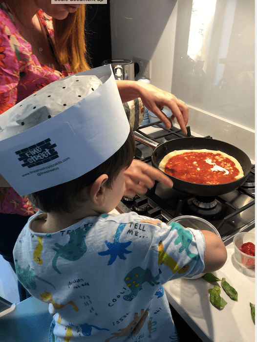 The kit includes everything a budding pizza chef needs - pizza dough, tomato base, mozzarella, and your toppings. All the ingredients come ready prepared in individual pots, so you can pretend you’re on an episode of Blue Peter. There are clear instructions too, with photos to help, and you even get a chefs hat to get you in the mood. Our toddler had great fun helping to roll out the dough and putting the toppings on his pizza.