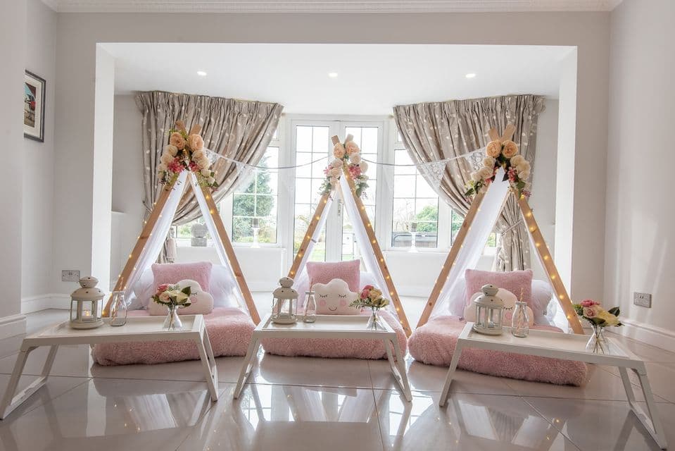 Themed indoor sleepover tents, luxury bell tents and picnic setups