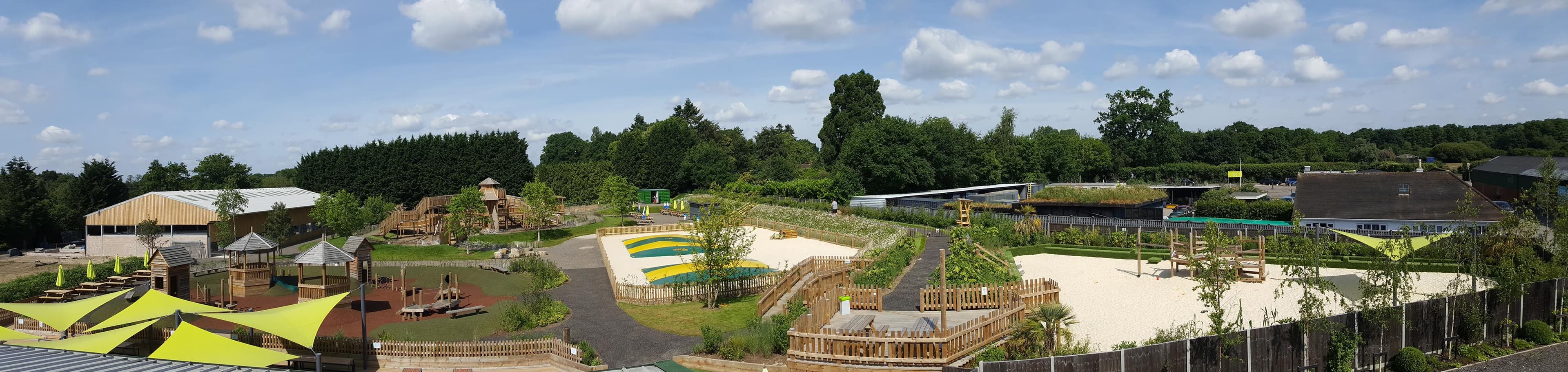 Chobham Adventure Farm is an indoor & outdoor play area designed for children to learn & participate along with adults. The indoor play area is currently closed, but outdoors there is a massive sandpit with slides and construction site, two bouncing pillows, a small and large play frame with zipwires, plus an animal barn with lots of animals to see!