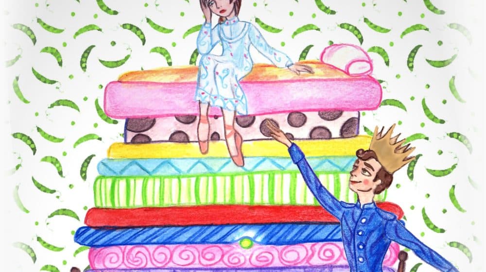 One night, a young woman turns up on the steps of the palace, wet through from a huge storm. The Queen takes one look at her muddy clothes and bedraggled hair and does not believe she is a real Princess. So that night the Queen sets the young woman a test.
